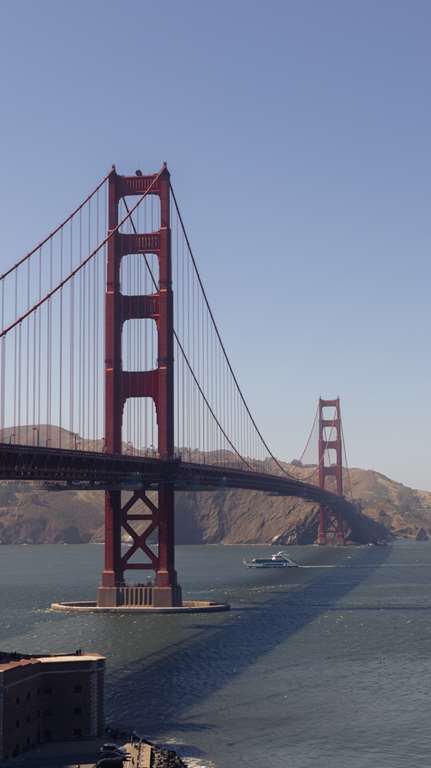 Le Golden Gate Bridge. Pont suspendu de 2 737 m. A 230 m. de haut. En service depuis 1937.