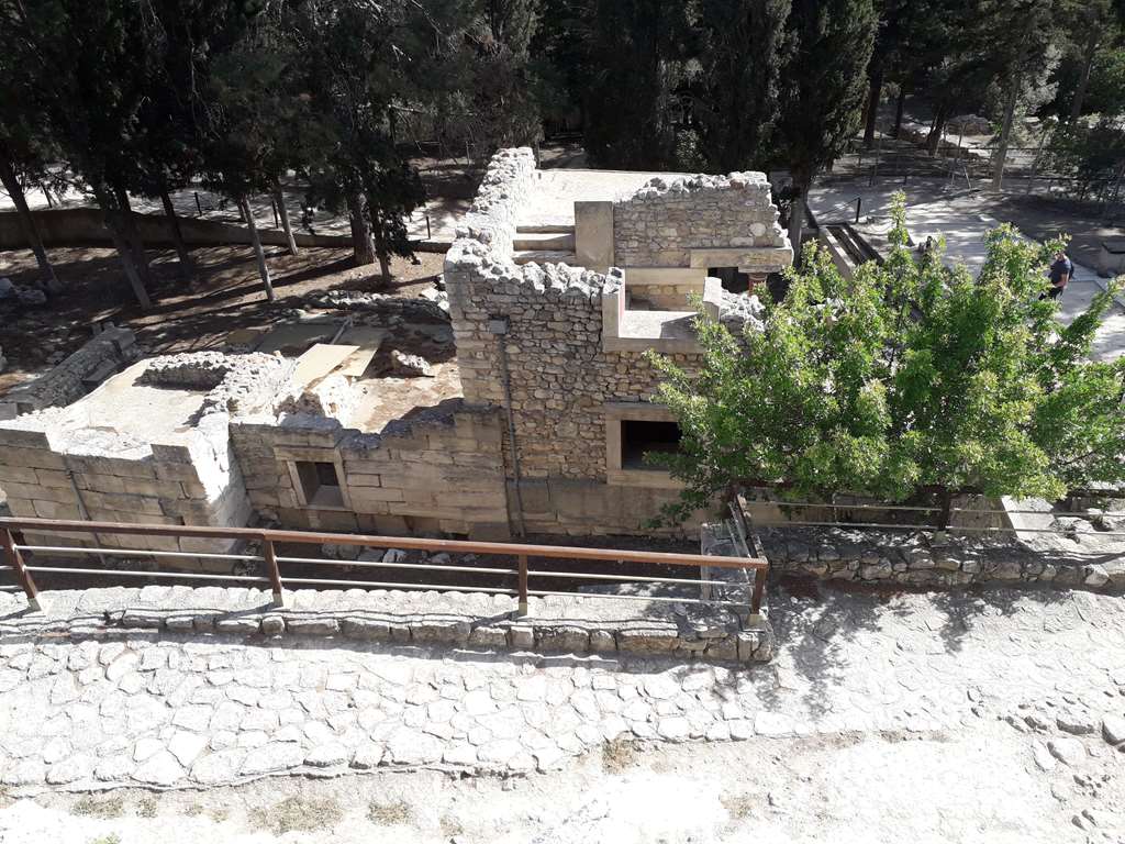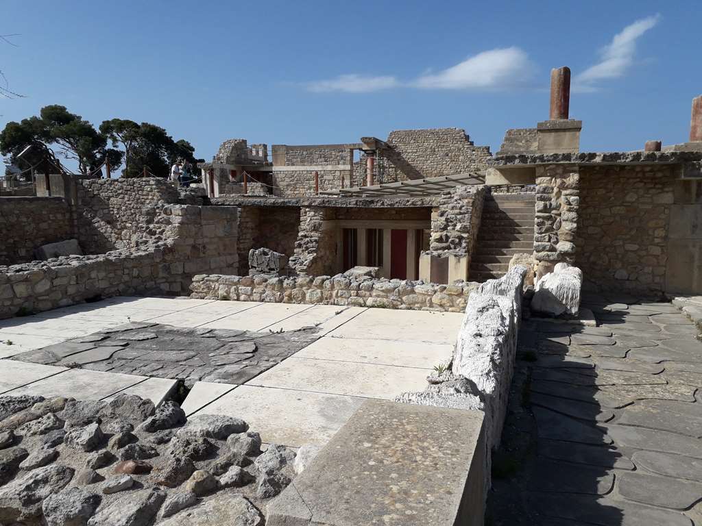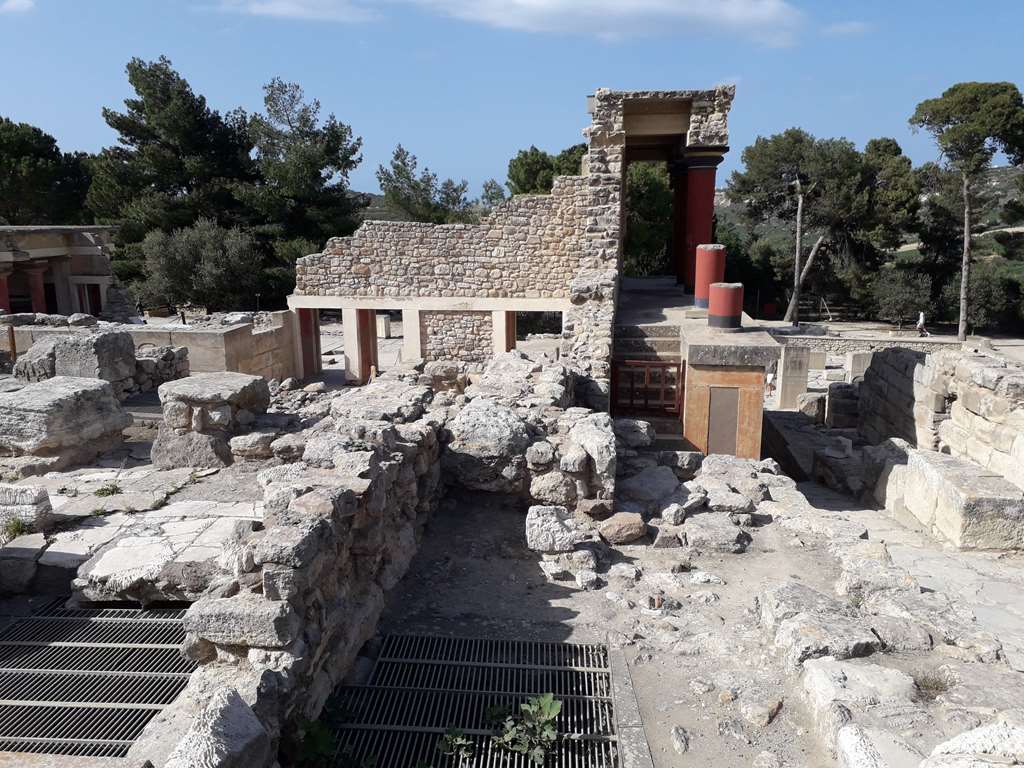 Cnossos ou Knossos est un site archéologique crétois de l'âge du bronze en Europe Il est situé à cinq kilomètres d'Héraklion