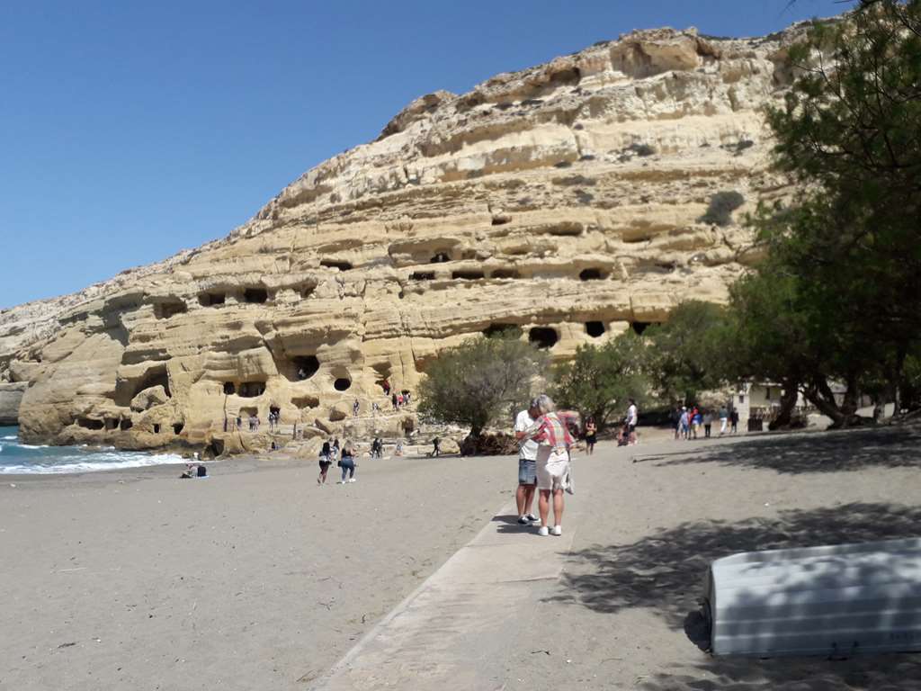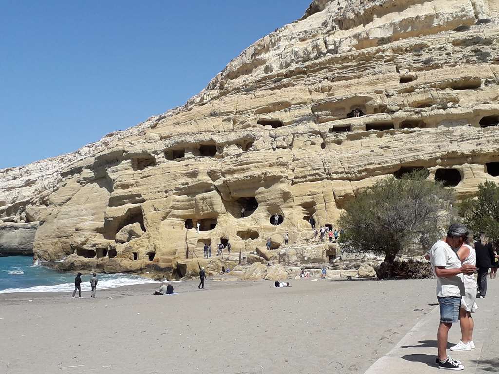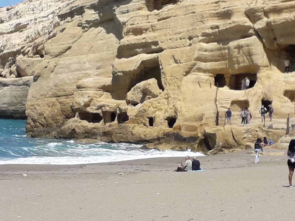 Matala est connu pour ses grottes aménagées et ses cavités creusées à la main Le site fut occupé dès l'Antiquité et ces grottes ont aussi servi de nécropole à l'époque romaine