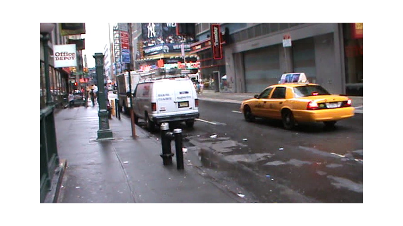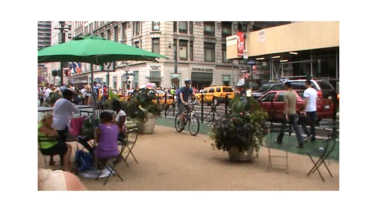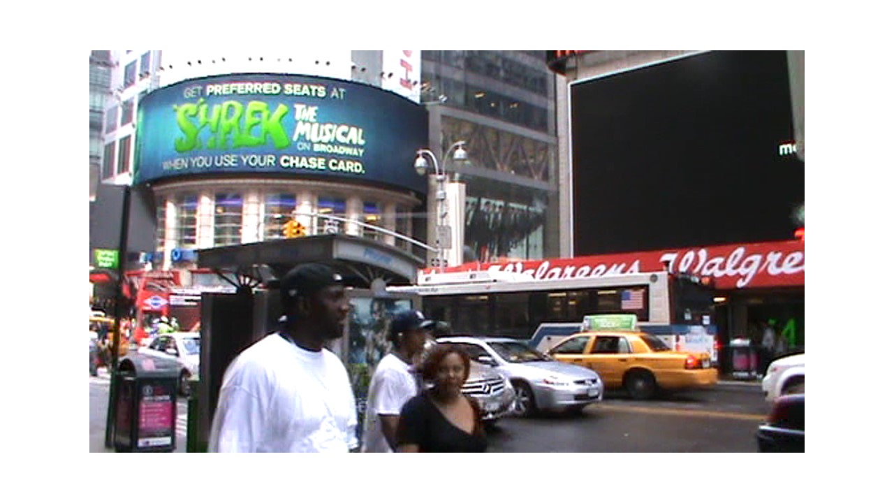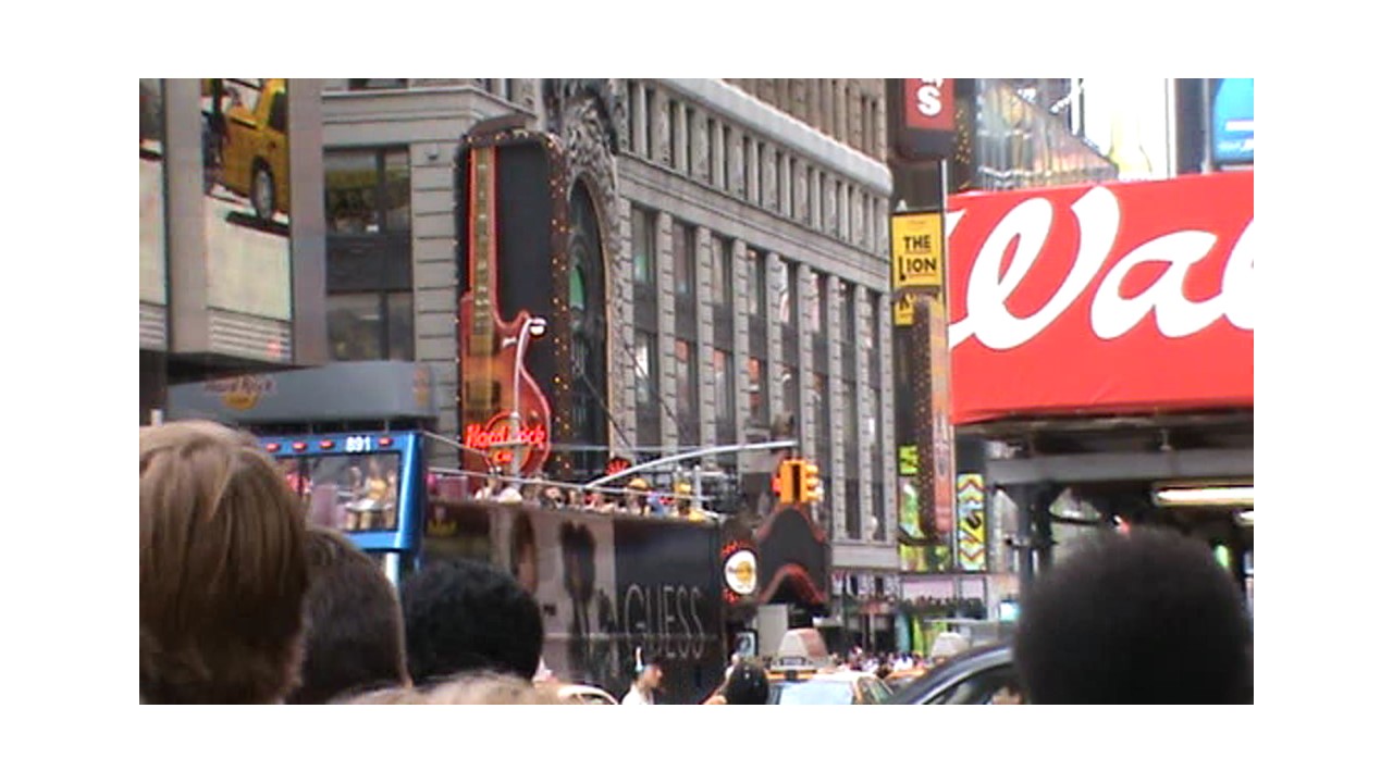 Beaucoup de lumière et de monde, projection d'images, de publicités sur les murs des immeubles.