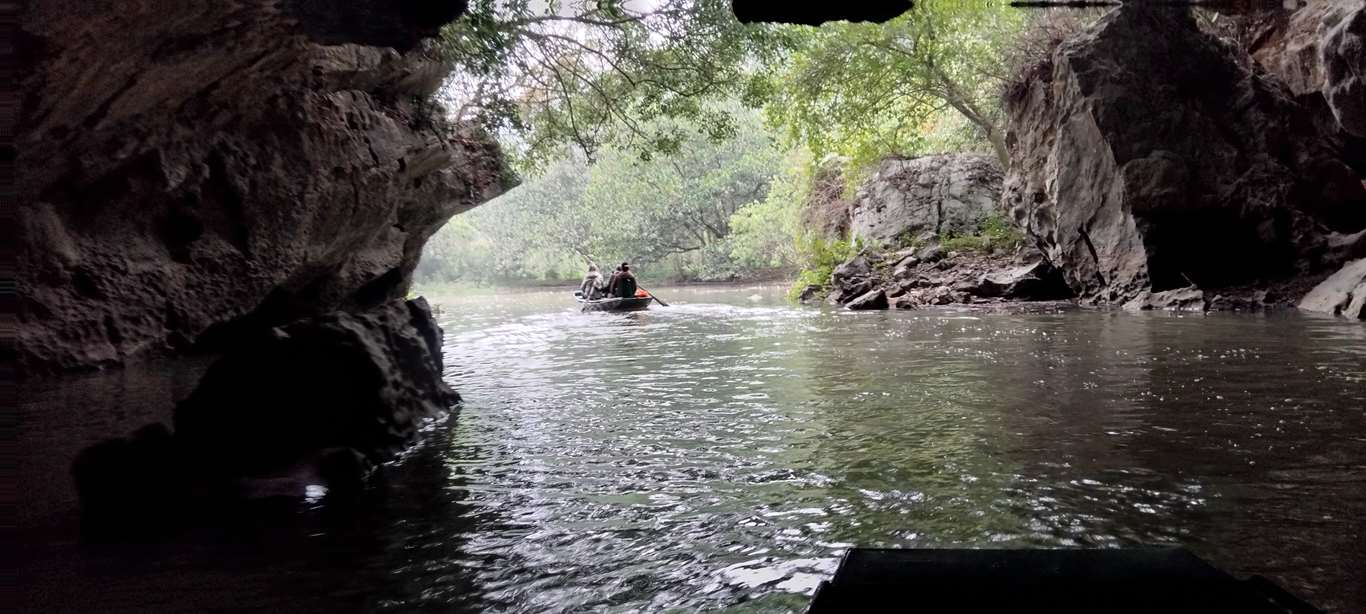 En passant dessous les grottes de Bich Dong