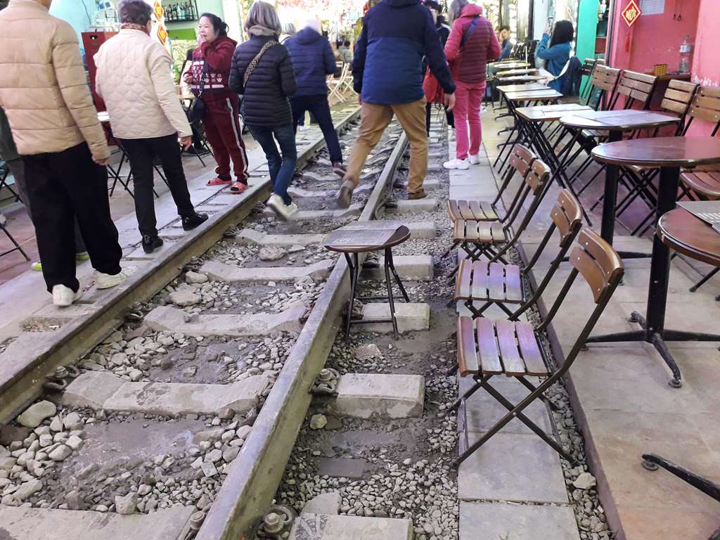 Au passage du train tout le monde se pousse. On enlève chaises et tables trop proches.