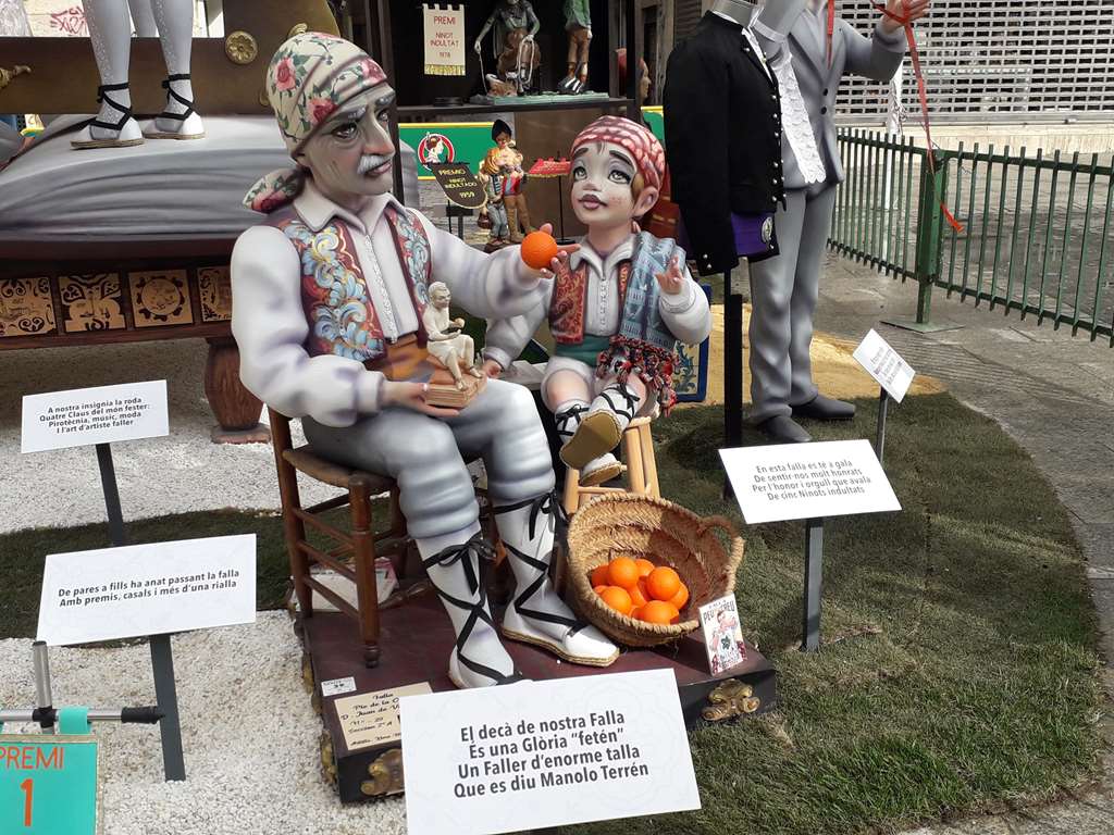 L'origine des Fallas remonte à une ancienne coutume des menuisiers qui, pour fêter l'arrivée du printemps, brûlaient le 19 mars devant leurs ateliers les pièces en bois (parots). Ils les utilisaient pour élever les lampes à huile qui les éclairaient durant l'hiver. Petit à petit, ils ont ajouté à ce feu purificateur des vieux objets et des guenilles, qui ont humanisé les parots jusqu'à les convertir en ninots. Aujourd'hui, les fallas sont devenues de gigantesques ensembles monumentaux très colorés et moulés dans des matériaux composites autour d'une structure de bois. D'une hauteur moyenne de 20 à 30 mètres pour les grandes Fallas, elles sont illustrées de plusieurs dizaines de figurines, les Ninots, terme valencien signifiant poupée.